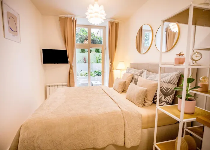 Dieses Apartment verfügt über einen Balkon und eine Sitzecke und bietet einen Blick auf den Garten. Diese Unterkünfte bietet 1 Badezimmer. Außerdem gibt es einen Haartrockner, eine Duschhaube und Badelaken.